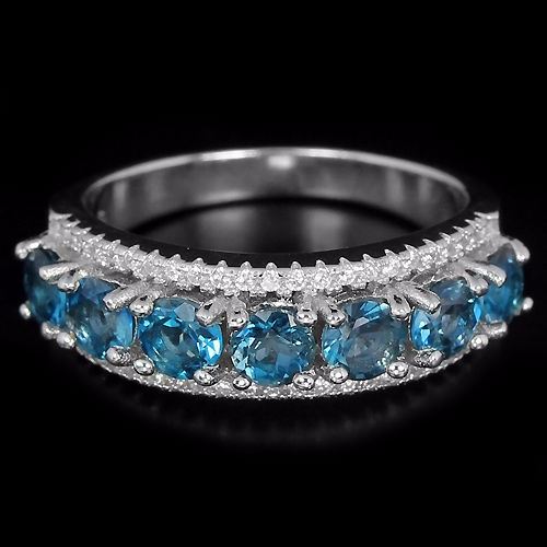 GENUINE AAA LONDON BLUE TOPAZ & WHITE CZ 925 SILVER RING 14K WHITE GOLD COATING...size 7; STONE SHAPEROUND PORTUGUESE CUTSTONE DIMENSION4 MM.MAIN STONE WEIGHT2.1 CARATCOLORLONDON BLUECLARITYIF TO VVSLUSTERENCHANTINGTREATMENTIRRADIATIONORIGIN OF STONEAFRICAHARDNESS8OTHERFACE OF RING 24 X 7 MM. WHITE CUBIC ZIRCONIA 1 MM. TOTAL 4.7 G.