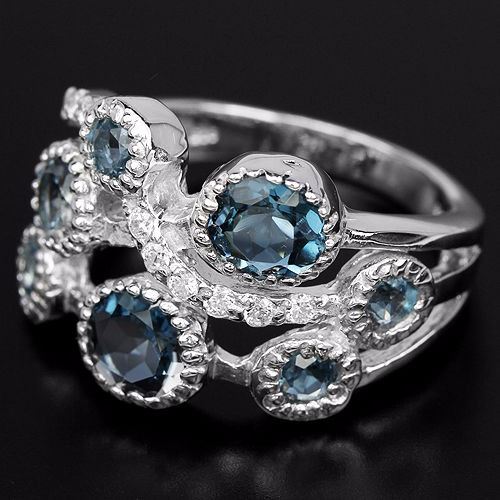 GENUINE AAA LONDON BLUE TOPAZ WHITE CZ 925 SILVER RING 14K WHITE GOLD COATING;RING SIZE- 7.50 ( can be resized ) ITEM QUANTITY -1; STONE SHAPE -ROUND PORTUGUESE CUT; STONE DIMENSION 5.5 MM. , 4.5 MM. , 3.5 MM. ITEM WEIGHT -6 GRAM; COLOR -LONDON BLUE; CLARITY -IF TO VVS; TREATMENT -IRRADIATION; ORIGIN OF STONE -AFRICA; HARDNESS -8; ; FACE OF RING -22 X 15 MM. ; WHITE CUBIC ZIRCONIA 1.5 MM.