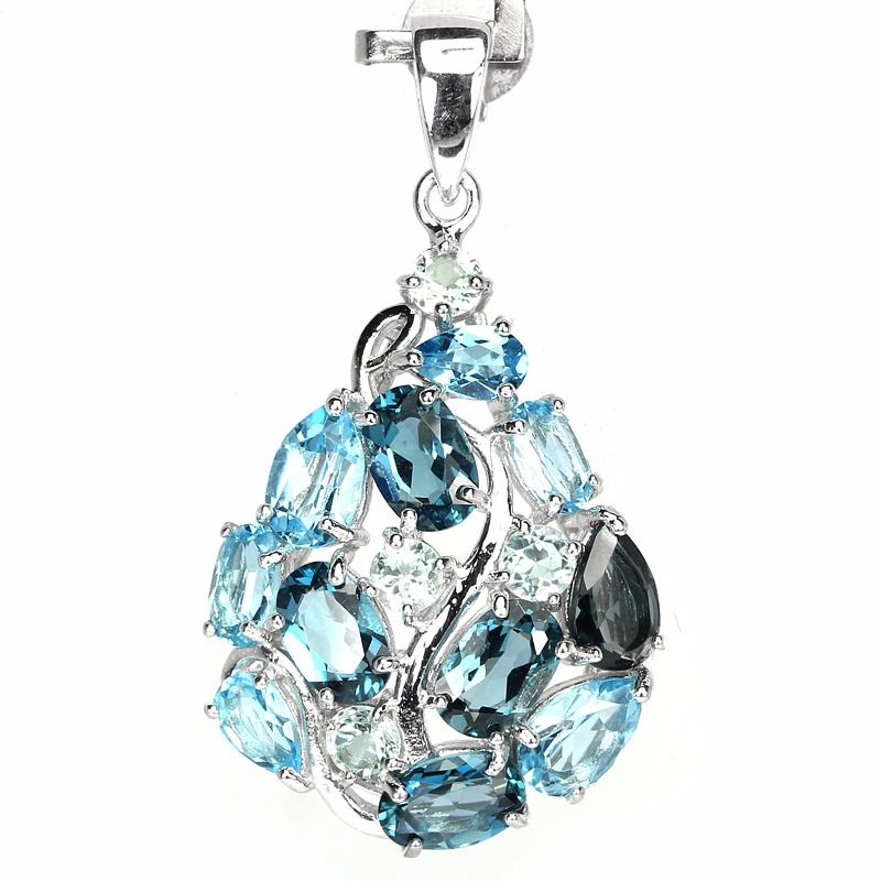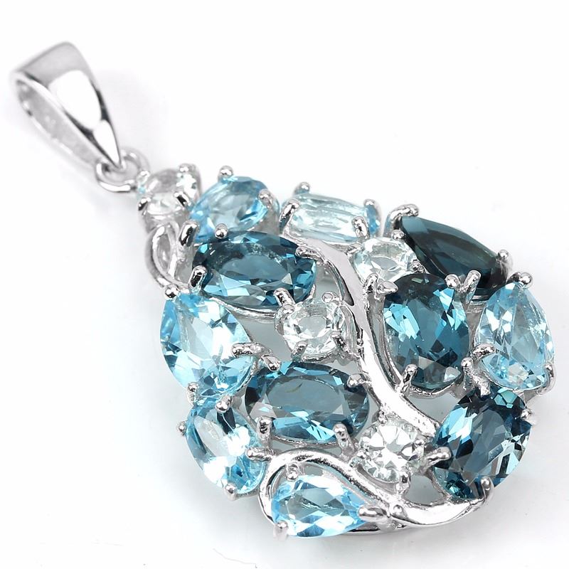 GENUINE LONDON,SWISS & SKY BLUE TOPAZ 925 SILVER PENDANT 14K WHITE GOLD COATING.....STONE SHAPE MIXED SHAPE; STONE DIMENSION 6 X 4 MM. , 5 X 3 MM. , 3 MM.ITEM WEIGHT3.3 GRAM; COLOR LONDON BLUE, SWISS BLUE & SKY BLUE; CLARITY IF TO VVS LUSTER ENCHANTING TREATMENT IRRADIATION; ORIGIN OF STONE AFRICA; HARDNESS 8 ; FACE OF PENDANT 34 X 18 MM.