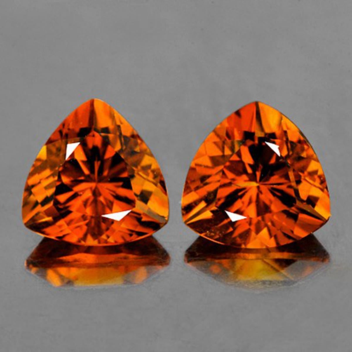 Natural CitrineSIZE ( L x W x D ) : 6.50 mmCOLOR : Madeira Orange (AAA+)SHAPE : TrillionQUANTITY : 2 pieces LUSTER : Excellent CLARITY : IF-VVS1 HIGH QUALITYHARDNESS : 7ORIGIN : Brazil TREATMENT : 100% Natural Unheated