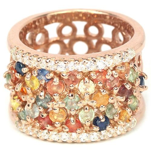 MULTI COLOR SAPPHIRE CZ 925 SILVER RING 14K PINK GOLD COATING; RING SIZE- 6.50 ; ITEM QUANTITY 1 STONE SHAPE ROUND STONE DIMENSION 2.5 MM. ITEM WEIGHT 10.36 GRAM COLOR MULTI COLOR CLARITY VS-SI TRANSLUCENT LUSTER ELEGANT TREATMENT HEATED ORIGIN OF STONE AFRICA THAILAND HARDNESS 9 FACE OF RING 23 X 14 MM. WHITE CUBIC ZIRCONIA 1.5 MM.