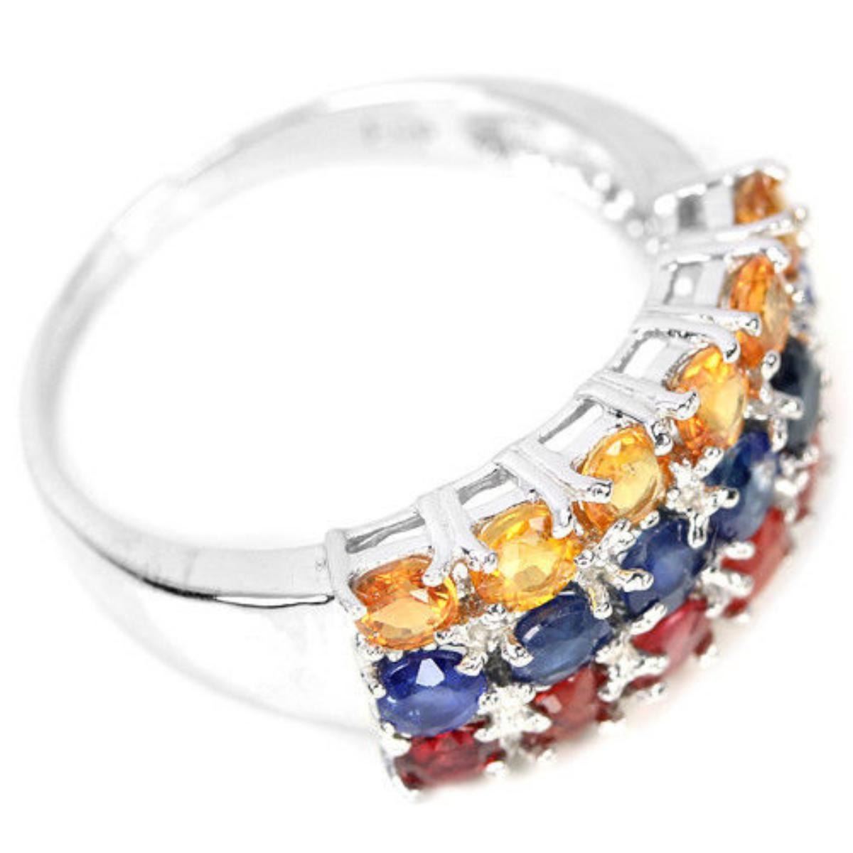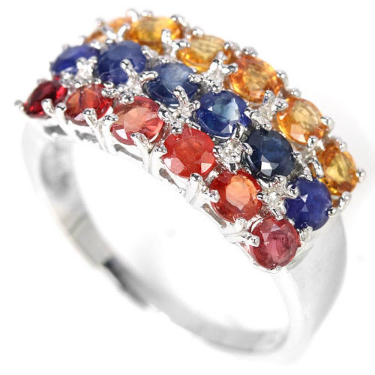 GENUINE MULTI COLOR SAPPHIRE ROUND 925 SILVER RING 14K WHITE GOLD COATING;RING SIZE - 9.25 ( can be resized ) ITEM QUANTITY 1 STONE SHAPE ROUND STONE DIMENSION 3 MM. ITEM WEIGHT 4.27 GRAM COLOR MULTI COLOR CLARITY TRANSLUCENT IF-SI LUSTER ELEGANT TREATMENT HEATED ORIGIN OF STONE - AFRICA HARDNESS 9.0 FACE OF RING 20 X 10 MM.