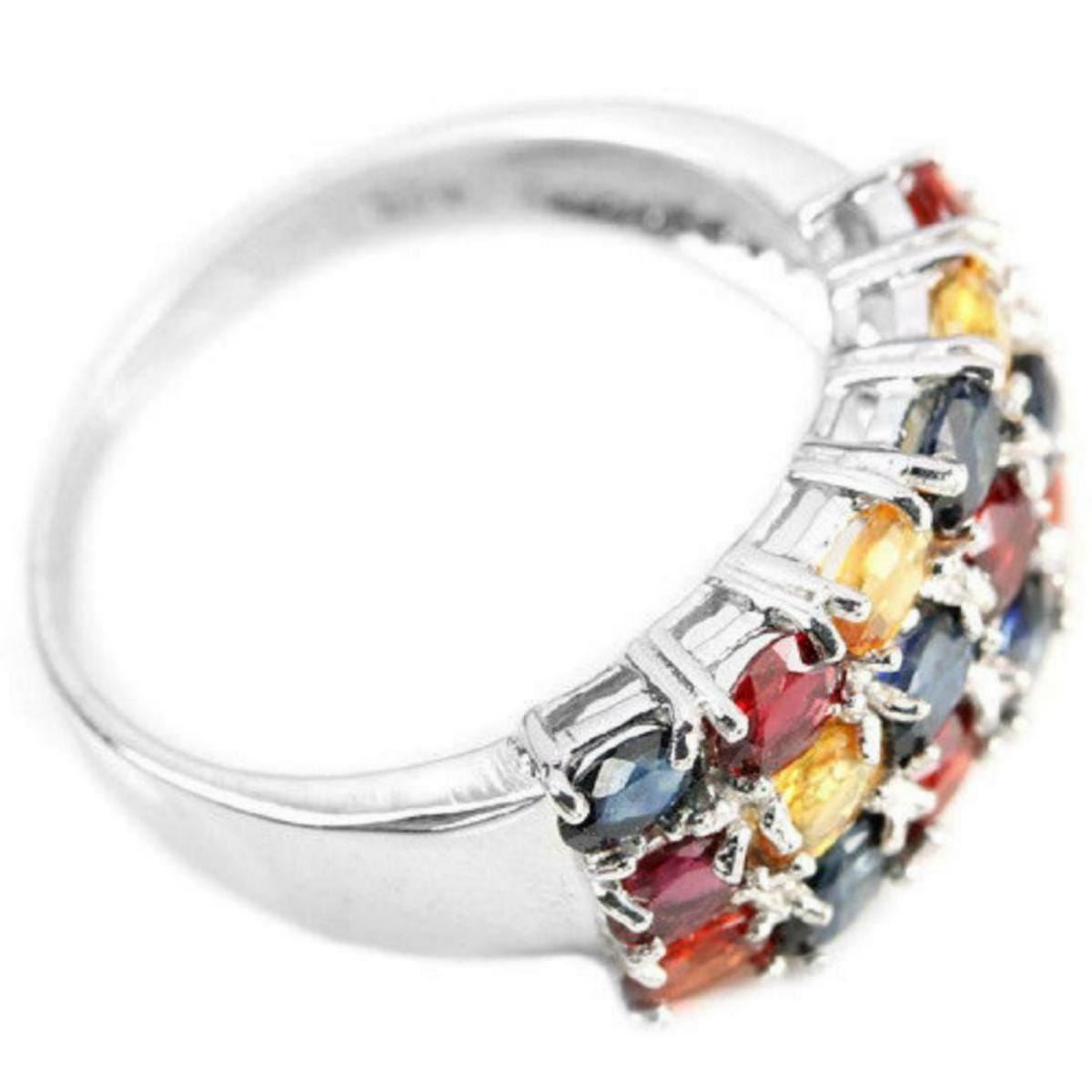 GENUINE AAA MULTI COLOR SAPPHIRE 925 SILVER RING 14K WHITE GOLD COATING;RING SIZE- 9.25 ( can be resized ) ITEM QUANTITY 1 STONE SHAPE OVAL FACET CUT STONE DIMENSION 4 X 3 MM. ITEM WEIGHT 4.24 GRAM COLOR MULTI COLOR CLARITY TRANSLUCENT & VS-SI LUSTER ALLURING TREATMENT HEATED ORIGIN OF STONE THAILAND & AFRICA HARDNESS 9.0 FACE OF RING 21 X 10 MM.