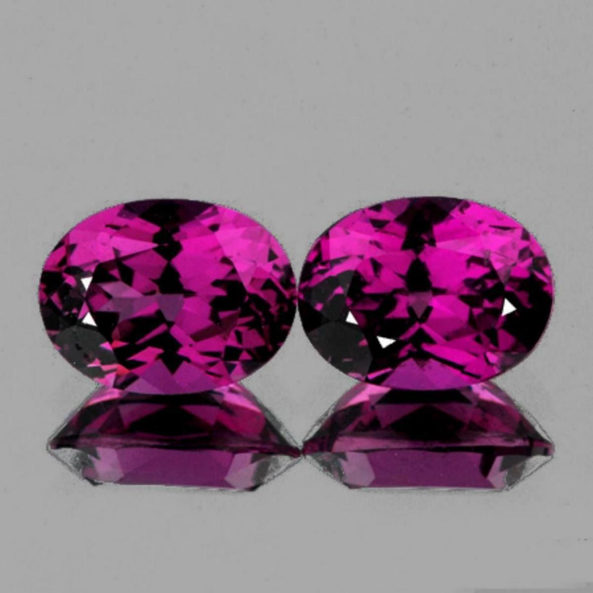 Natural Rhodolite Garnet (Umbalite) WEIGHT : 4.20 cts; SHAPE : Oval; SIZE ( L x W x D ) : 8.50 x 6.50 mm; QUANTITY : 2 pieces (Perfect Matching Pair) COLOR : Magenta Purple AAA Color; CLARITY : Flawless-VVS1 ; AAA Grade; ORIGIN : Umba Valley, Tanzania; HARDNESS : 7; LUSTER : AAA Fire!!! TREATMENT : 100% Natural Unheated;