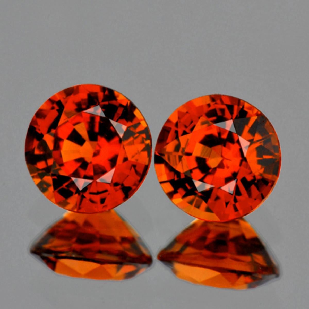 Natural Spessartite Garnet; WEIGHT : 1.76 cts; SHAPE : Round; SIZE ( L x W x D ) : 5.20 mm; QUANTITY : 2 pieces (Perfectly Matched Pair) COLOR : AAA Mandarin Orange ; CLARITY : IF-VVS; ORIGIN : Nigeria;; LUSTER : Excellent!!! TREATMENT : 100% Natural Unheated