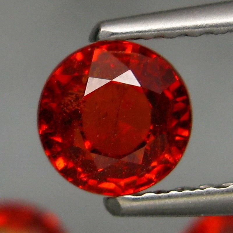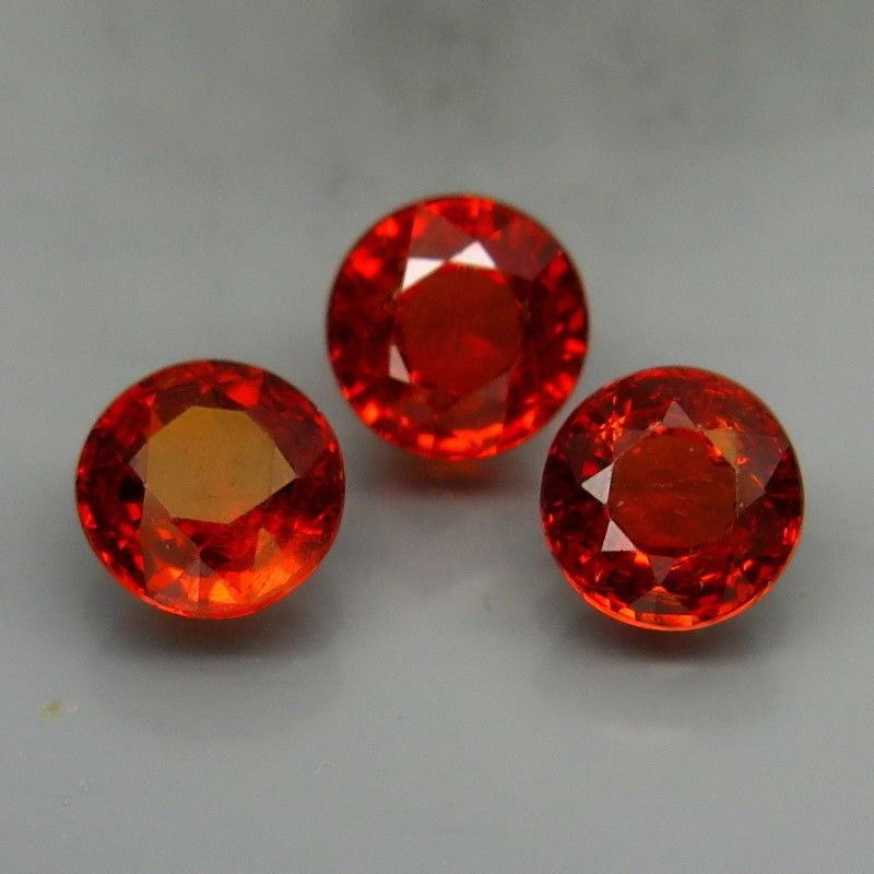 Spessartite Garnet SHAPE Round; WEIGHT 2.65 Ct.; SIZE5.5 mm; QUANTITY 3 Pieces; COLOR Fire Mandarin Orange; CLARITY SI I1; LUSTER Superior ORIGIN Namibia; TREATMENT None; HARDNESS 7-7.5