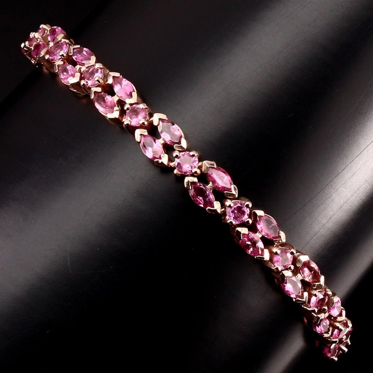 925 STERLING SILVER;PLATE14K ROSE GOLD;LENGTH (INCHES)9.5MAIN STONETOURMALINE;TOTAL WEIGHT55.90 CT (TOTAL WEIGHT OF SILVER + STONE)DIMENSION* STONE 3.0 TO 5.0 X 2.5 MM. * FACE BRACELET 100.0 X 6.0 MM.MAIN STONE SHAPEMARQUISE CUTMAIN STONE COLORTOP RICH PINKCLARITY/GRADEIF TO VVSLUSTERFASCINATINGTREATMENTUNHEATEDORIGINBRAZILHARDNESS7.0 - 7.5