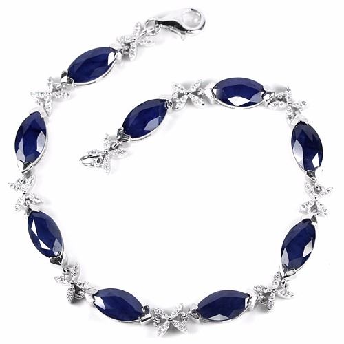 GENUINE AAA BLUE SAPPHIRE WHITE CZ 925 SILVER BRACELET 14K WHITE GOLD COATING; LENGTH OF ITEM (Inch.) 6.75 ; ITEM QUANTITY -1; STONE SHAPE -MARQUISE FACET CUT; STONE DIMENSION -10 X 5 MM.; ITEM WEIGHT -11.6 GRAM; COLOR -BLUE; CLARITY -TRANSLUCENT; TREATMENT -yes; HARDNESS ;9; WHITE CUBIC ZIRCONIA - 1 MM.