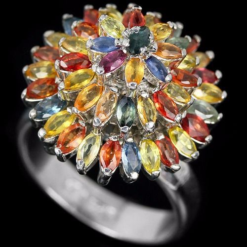 ENUINE SONGEA AAA MULTI COLOR SAPPHIRE 925 SILVER RING 14K WHITE GOLD COATING...ring size 7.75(can be resized); TONE SHAPEMARQUISE FACET CUTSTONE DIMENSION4 X 2 MM.MAIN STONE WEIGHT6.63 CARATCOLORMULTI - COLORCLARITYVVS, VS TO SILUSTERENCHANTINGTREATMENTHEATEDORIGIN OF STONEAFRICAHARDNESS9OTHERFACE OF RING 20 X 20 MM. TOTAL 8.6 G.