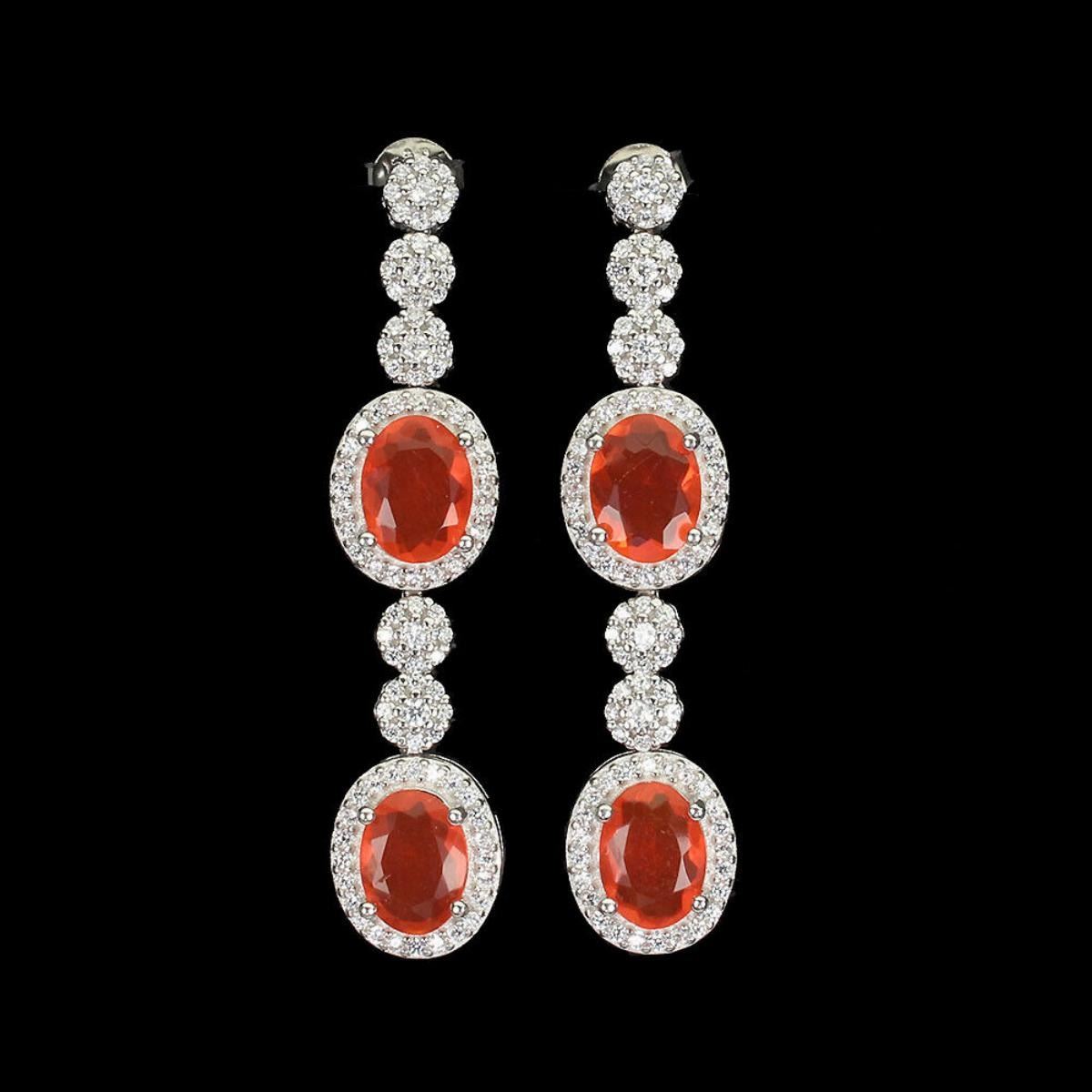 925 STERLING SILVER;PLATE-14K WHITE GOLD;MAIN STONE-ORANGE OPAL;TOTAL WEIGHT-7.41 GRAM (TOTAL WEIGHT OF SILVER + STONE)DIMENSION-* STONE 8.0 X 6.0 MM. *. * FACE EARRINGS- 43.0 X 9.0 MM.;MAIN STONE SHAPE-OVAL CUT;MAIN STONE COLOR-- RICH ORANGE;CLARITY/GRADE-IF TO VVS;TREATMENT-- Yes ;ORIGIN-MEXICO;HARDNESS-5.5 - 6.5;