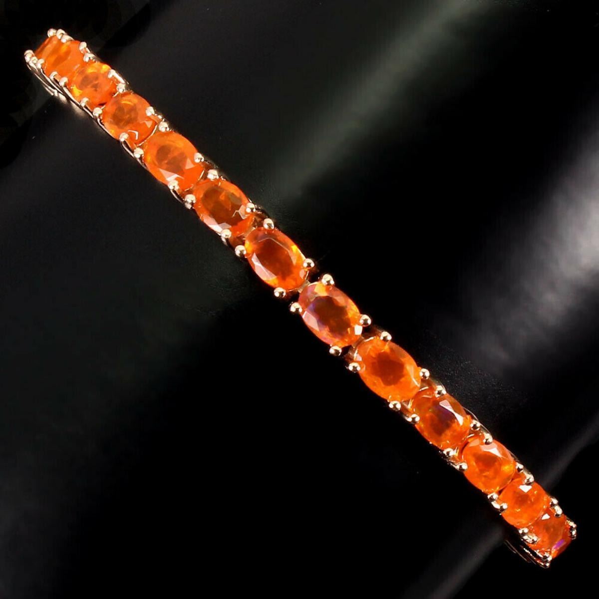 925 STERLING SILVER;PLATE-14K ROSE GOLD;LENGTH (INCHES)7;MAIN STONE-ORANGE FIRE OPAL;TOTAL WEIGHT-14.22 GRAM (TOTAL WEIGHT OF SILVER + STONE)DIMENSION* STONE 6.0 X 4.0 MM. * FACE BRACELET 178.0 X 4.0 MM.;MAIN STONE SHAPE-OVAL CUT;MAIN STONE COLOR-TOP RICH ORANGE;CLARITY/GRADE-IF;ORIGIN-MEXICO;HARDNESS-5;