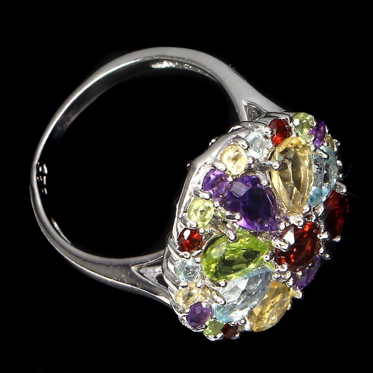 925 STERLING SILVER -14K WHITE GOLD Plated; RING SIZE- 8 (can be resized) MAIN STONE -MOZAMBIQUE GARNET; GEMS -AMETHYST,CITRINE,PERIDOT,SKY BLUE TOPAZ; TOTAL WEIGHT 30.75 CT (TOTAL WEIGHT OF SILVER + STONE) DIMENSION -* STONE 2.0 TO 6.0 X 4.0 MM. * FACE RING 20.0 MM. MAIN STONE SHAPE -ROUND CUT; MAIN STONE COLOR -TOP RICH RED; CLARITY/GRADE -IF TO VVS; TREATMENT -UNHEATED; ORIGIN -AFRICA; HARDNESS -6.5 - 8.0;