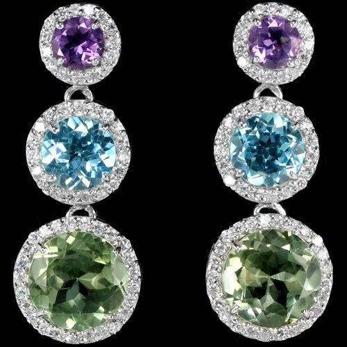 GENUINE MULTI COLOR AMETHYST TOPAZ ,CZ 925 SILVER EARRING 14K WHITE GOLD COATING; STONE SHAPE-ROUND;STONE DIMENSION-12 MM. , 9 MM. , 6 MM.;ITEM WEIGHT-12.85 GRAM;COLOR-MULTI COLOR;CLARITY-IF TO VVS;LUSTER-GRACEFULLYTREATMENTNATURAL UN;HEATED IRRADIATION;ORIGIN OF STONE-BRAZIL AFRICA;HARDNESS-7 - 8;FACE OF EARRING -42 X 16 MM. ;WHITE CUBIC ZIRCONIA 1.5 MM.;