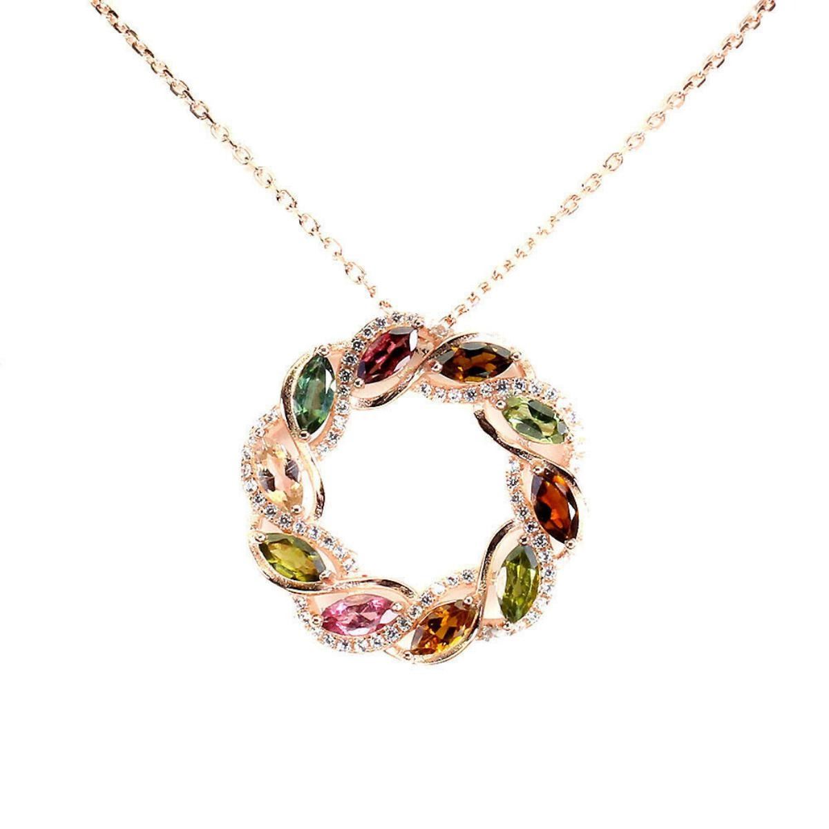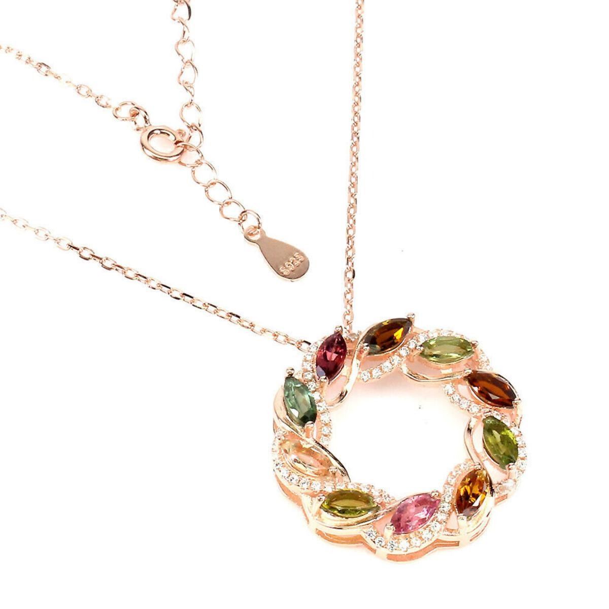 925 STERLING SILVER;PLATE-14K ROSE GOLD;LENGTH (INCHES)16.5;MAIN STONE-TOURMALINE;TOTAL WEIGHT-6.98 GRAM (TOTAL WEIGHT OF SILVER + STONE)DIMENSION-* STONE 6.0 X 3.0 MM. * CZ 1.0 MM. * TOTAL LENGTH 16.5 INCHES.- * STONES PART LENGTH 26.0 X 26.0 MM.;MAIN STONE SHAPE-MARQUISE CUT;MAIN STONE COLOR-MULTI-COLOR;TREATMENT-UNHEATED;ORIGIN-BRAZIL;HARDNESS-7.0-7.5;