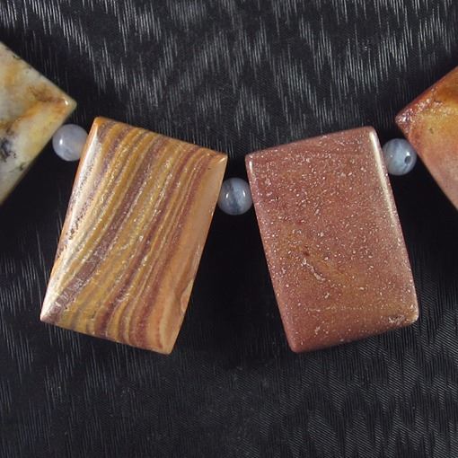 Stone Name Multi-Color Picasso *Stone Overall Dimension for each bead 55x33x7 mm (2.165x1.299x0.276 inch ) *Weight 520 ct/ 104 g/ 3.668496 ozOther Stones used in this Necklace Wonderstone*Center Stone Properties *Locality unknown *Appearance opaque *Color Red green - yellow Orange *Mohs Hardness 6 *Source Natural *Treatments None *Drilled YES diameter 2.5/36-3/36 inch *Other Names~~~~~~~~~(+) Each step of our Lapidary work is under tight quality control . With the best pattern-color combination possible in mind the initial cut was done by experienced lapidary ... The last-step diamond polishing makes the surface of each bead/cab mirror-like glossy that meet the highest standard possible. Finally only those met all quality requirements are selected.