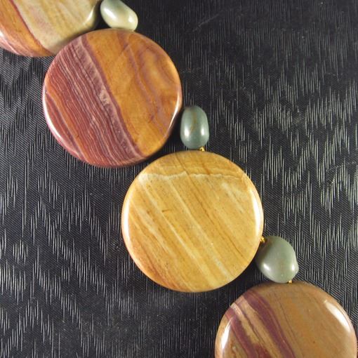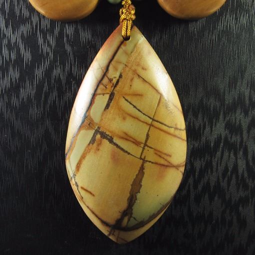 Necklace Size Ajutable 20-28 inch (if range given) *Stone Name Picasso Jasper *Stone Overall Dimension for each bead 59x31x7 mm (2.323x1.220x0.276 inch ) *Weight 410 ct/ 82 g/ 2.892468 oz*Handcrafted knot chainOther Stones used in this Necklace Wonderstone*Center Stone Properties *Locality unknown *Appearance opaque *Color Red green - yellow Orange *Mohs Hardness 6 *Source Natural *Treatments None *Drilled YES diameter 2.5/36-3/36 inch *Other Names~~~~~~~~~(+) Each step of our Lapidary work is under tight quality control . With the best pattern-color combination possible in mind the initial cut was done by experienced lapidary ... The last-step diamond polishing makes the surface of each bead/cab mirror-like glossy that meet the highest standard possible. Finally only those met all quality requirements are selected.