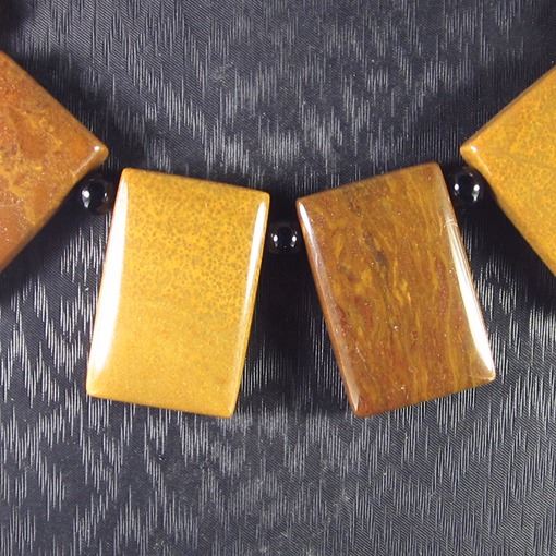 Necklace Size Ajutable 20-27 inch (if range given) *Stone Name Multi-Color Picasso *Stone Overall Dimension for each bead 52x33x7 mm (2.047x1.299x0.276 inch ) *Weight 540 ct/ 108 g/ 3.809592 ozOther Stones used in this Necklace Flame Jasper*Center Stone Properties *Locality unknown *Appearance opaque *Color Red green - yellow Orange *Mohs Hardness 6 *Source Natural *Treatments None *Drilled YES diameter 2.5/36-3/36 inch *Other Names~~~~~~~~~(+) Each step of our Lapidary work is under tight quality control . With the best pattern-color combination possible in mind the initial cut was done by experienced lapidary ... The last-step diamond polishing makes the surface of each bead/cab mirror-like glossy that meet the highest standard possible. Finally only those met all quality requirements are selected.