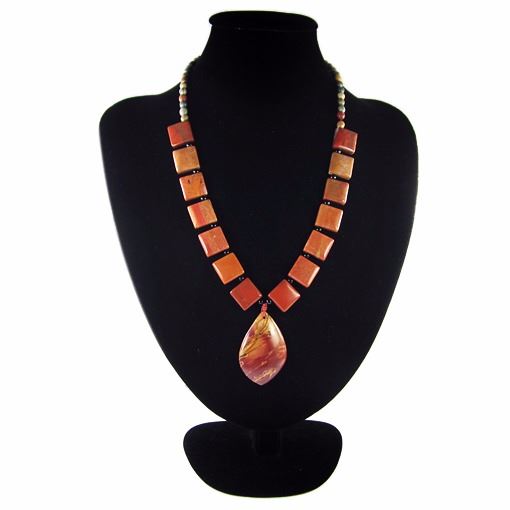 Necklace Size Ajutable 20-28 inch (if range given) *Stone Name Multi-Color Picasso *Stone Overall Dimension for each bead 48x31x6 mm (1.890x1.220x0.236 inch ) *Weight 355 ct/ 71 g/ 2.504454 ozOther Stones used in this Necklace Flame Jasper*Center Stone Properties *Locality unknown *Appearance opaque *Color Red green - yellow Orange *Mohs Hardness 6 *Source Natural *Treatments None *Drilled YES diameter 2.5/36-3/36 inch *Other Names~~~~~~~~~(+) Each step of our Lapidary work is under tight quality control . With the best pattern-color combination possible in mind the initial cut was done by experienced lapidary ... The last-step diamond polishing makes the surface of each bead/cab mirror-like glossy that meet the highest standard possible. Finally only those met all quality requirements are selected.