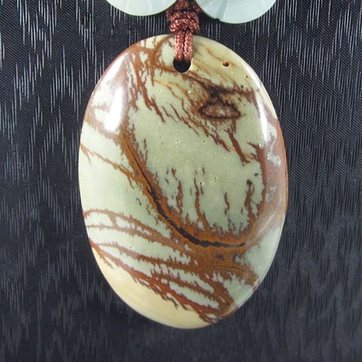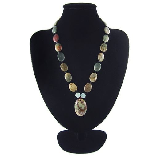 Necklace Size Ajutable 20-31 inch (if range given) *Stone Name Picasso Jasper *Stone Overall Dimension for each bead 37x25x6 mm (1.457x0.984x0.236 inch ) *Weight 340 ct/ 68 g/ 2.398632 oz*Handcrafted knot chainOther Stones used in this Necklace Multi-Color Picasso*Center Stone Properties *Locality unknown *Appearance opaque *Color Red green - yellow Orange *Mohs Hardness 6 *Source Natural *Treatments None *Drilled YES diameter 2.5/36-3/36 inch *Other Names~~~~~~~~~(+) Each step of our Lapidary work is under tight quality control . With the best pattern-color combination possible in mind the initial cut was done by experienced lapidary ... The last-step diamond polishing makes the surface of each bead/cab mirror-like glossy that meet the highest standard possible. Finally only those met all quality requirements are selected.