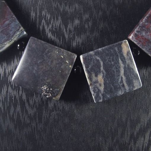 Necklace Size Ajutable 19-27 inch (if range given) *Stone Name Multi-Color Picasso *Stone Overall Dimension for each bead 57x25x7 mm (2.244x0.984x0.276 inch ) *Weight 505 ct/ 101 g/ 3.562674 ozOther Stones used in this Necklace Bloodstone*Center Stone Properties *Locality unknown *Appearance opaque *Color Red green - yellow Orange *Mohs Hardness 6 *Source Natural *Treatments None *Drilled YES diameter 2.5/36-3/36 inch *Other Names~~~~~~~~~(+) Each step of our Lapidary work is under tight quality control . With the best pattern-color combination possible in mind the initial cut was done by experienced lapidary ... The last-step diamond polishing makes the surface of each bead/cab mirror-like glossy that meet the highest standard possible. Finally only those met all quality requirements are selected.