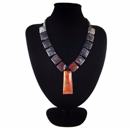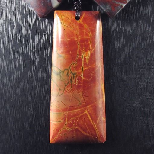 Necklace Size Ajutable 19-27 inch (if range given) *Stone Name Multi-Color Picasso *Stone Overall Dimension for each bead 57x25x7 mm (2.244x0.984x0.276 inch ) *Weight 505 ct/ 101 g/ 3.562674 ozOther Stones used in this Necklace Bloodstone*Center Stone Properties *Locality unknown *Appearance opaque *Color Red green - yellow Orange *Mohs Hardness 6 *Source Natural *Treatments None *Drilled YES diameter 2.5/36-3/36 inch *Other Names~~~~~~~~~(+) Each step of our Lapidary work is under tight quality control . With the best pattern-color combination possible in mind the initial cut was done by experienced lapidary ... The last-step diamond polishing makes the surface of each bead/cab mirror-like glossy that meet the highest standard possible. Finally only those met all quality requirements are selected.