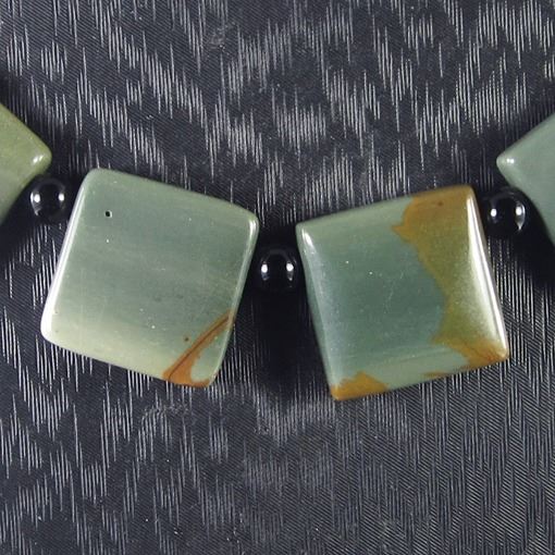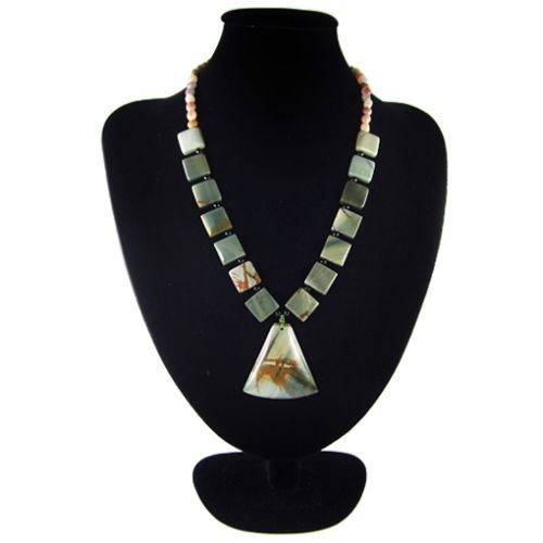 *Stone Name Multi-Color Picasso *Stone Overall Dimension for each bead 45x45x6 mm (1.772x1.772x0.236 inch ) *Weight 350 ct/ 70 g/ 2.46918 ozOther Stones used in this Necklace Multi-Color Picasso*Center Stone Properties *Locality unknown *Appearance opaque *Color Red green - yellow Orange *Mohs Hardness 6 *Source Natural *Treatments None *Drilled YES diameter 2.5/36-3/36 inch *Other Names~~~~~~~~~(+) Each step of our Lapidary work is under tight quality control . With the best pattern-color combination possible in mind the initial cut was done by experienced lapidary ... The last-step diamond polishing makes the surface of each bead/cab mirror-like glossy that meet the highest standard possible. Finally only those met all quality requirements are selected.