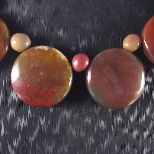 Necklace Size Ajutable 18-28 inch (if range given) *Stone Name Multi-Color Picasso *Stone Overall Dimension for each bead 50x26x6 mm (1.969x1.024x0.236 inch ) *Weight 445 ct/ 89 g/ 3.139386 ozOther Stones used in this Necklace Fancy Agate*Center Stone Properties *Locality unknown *Appearance opaque *Color Red green - yellow Orange *Mohs Hardness 6 *Source Natural *Treatments None *Drilled YES diameter 2.5/36-3/36 inch *Other Names~~~~~~~~~(+) Each step of our Lapidary work is under tight quality control . With the best pattern-color combination possible in mind the initial cut was done by experienced lapidary ... The last-step diamond polishing makes the surface of each bead/cab mirror-like glossy that meet the highest standard possible. Finally only those met all quality requirements are selected.