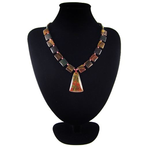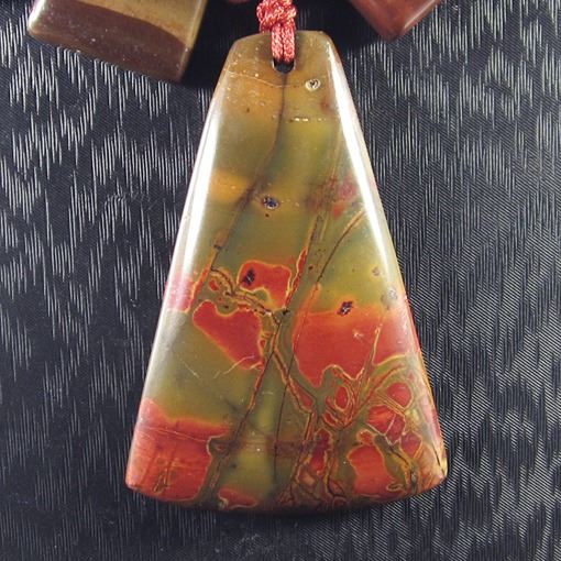 Necklace Size Ajutable 20-27 inch (if range given) *Stone Name Multi-Color Picasso *Stone Overall Dimension for each bead 45x31x6 mm (1.772x1.220x0.236 inch ) *Weight 340 ct/ 68 g/ 2.398632 ozOther Stones used in this Necklace Succor Creek Jasper*Center Stone Properties *Locality unknown *Appearance opaque *Color Red green - yellow Orange *Mohs Hardness 6 *Source Natural *Treatments None *Drilled YES diameter 2.5/36-3/36 inch *Other Names~~~~~~~~~(+) Each step of our Lapidary work is under tight quality control . With the best pattern-color combination possible in mind the initial cut was done by experienced lapidary ... The last-step diamond polishing makes the surface of each bead/cab mirror-like glossy that meet the highest standard possible. Finally only those met all quality requirements are selected.