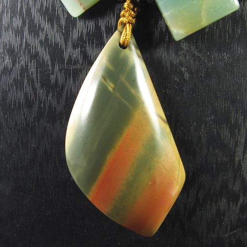 Necklace Size Ajutable 20-28"" inch (if range given) *Stone Name Picasso Jasper *Stone Overall Dimension for each bead 52x28x7 mm (2.047x1.102x0.276 inch ) *Weight 355 ct/ 71 g/ 2.504454 oz*Handcrafted knot chainOther Stones used in this Necklace Multi-Color Amazonite*Center Stone Properties *Locality unknown *Appearance opaque *Color Red green - yellow Orange *Mohs Hardness 6 *Source Natural *Treatments None *Drilled YES diameter 2.5/36-3/36 inch *Other Names~~~~~~~~~(+) Each step of our Lapidary work is under tight quality control . With the best pattern-color combination possible in mind the initial cut was done by experienced lapidary ... The last-step diamond polishing makes the surface of each bead/cab mirror-like glossy that meet the highest standard possible. Finally only those met all quality requirements are selected.