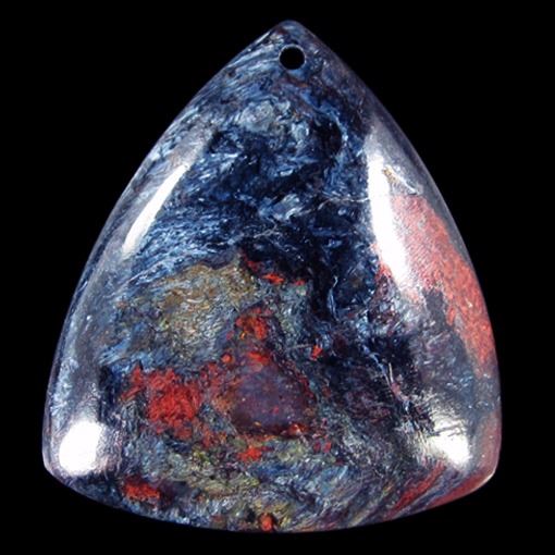 Stone Properties *Name Pietersite *Dimension 41x37x7 mm (1.614x1.457x0.276 inch ) *Weight 75 ct/ 15 g/ 0.52911 oz *Shape Triangle *Locality Namibia *Appearance opaque *Color Chatoyant Golden Yellow Red and blue *Mohs Hardness 7 *Source Natural *Treatments None *Drilled YES diameter 2.5/36-3/36 inch *Other Names *We drill all of our beads but NOT any of our CABs~~~~~~~~~(+) Each step of our Lapidary work is under tight quality control . With the best pattern-color combination possible in mind the initial cut was done by experienced lapidary ... The last-step diamond polishing makes the surface of each bead/cab mirror-like glossy that meet the highest standard possible. Finally only those met all quality requirements are selected.