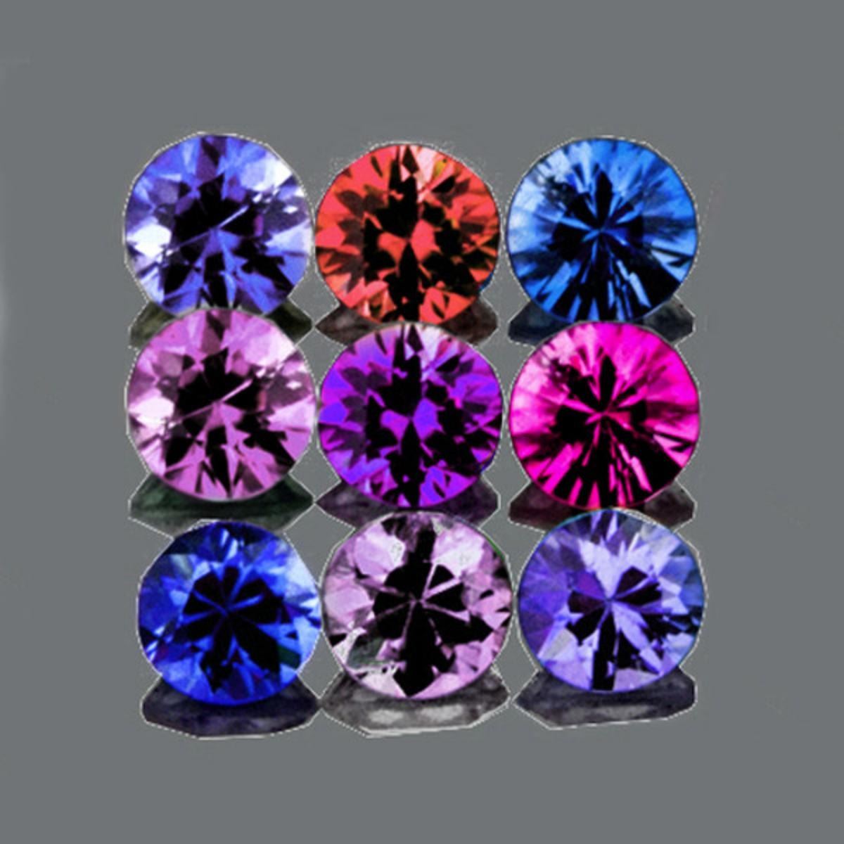 Natural Sapphire (Earthly mined)SIZE ( L x W x D ) : 2.80 mm;COLOR : Multi Color;(Shades of Pink, Blue, Violet-Blue, Purple)SHAPE : Round (Machine Cut)QUANTITY : 9 pieces ;;LUSTER : Extreme Brilliancy;CLARITY : Flawless-VVS;HARDNESS : 9;ORIGIN : Mozambique; TREATMENT : Heated;