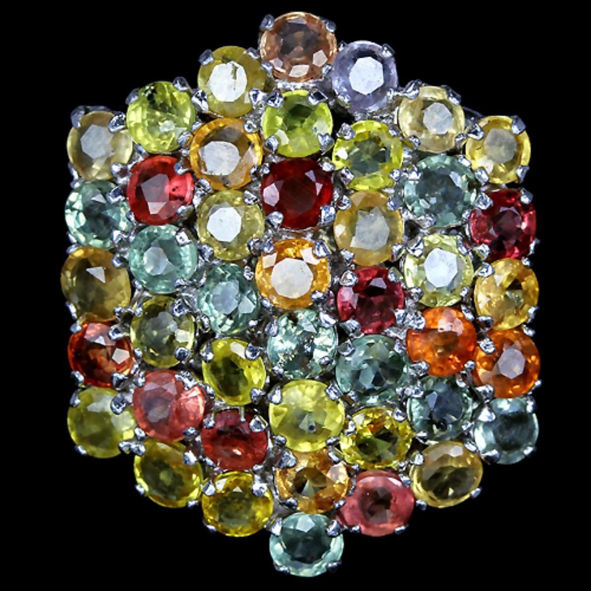 NATURAL SONGEA MULTI COLOR SAPPHIRE 925 SILVER RING 14K WHITE GOLD COATING.............RING SIZE, LENGTH OF ITEM (Inch.)7.00;ITEM QUANTITY1;STONE SHAPEROUND FACET CUT;STONE DIMENSION3 MM.;MAIN STONE WEIGHT-4.52 CARAT;COLOR-MULTI COLOR;CLARITYVVS - VS;LUSTERDAZZLING;TREATMENT-HEATED;ORIGIN OF STONEAFRICA;HARDNESS9.0;OTHERFACE OF RING 23 X 20 MM. ;TOTAL 7.60 G.