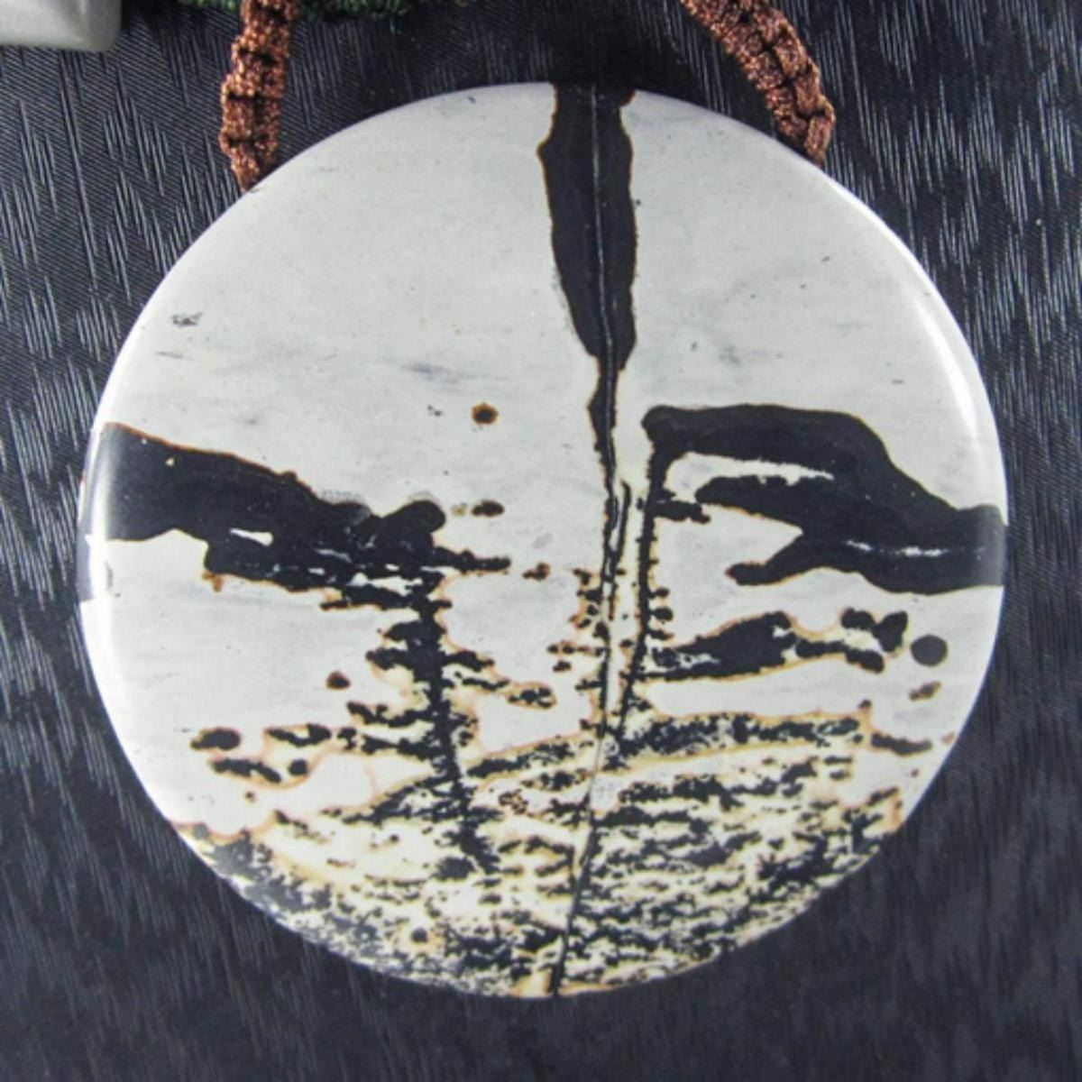 Necklace Size Ajutable 18"" inch (if range given) *Stone Name Chinese Painting Jasper *Stone Overall Dimension for each bead 48x48x7 mm (1.890x1.890x0.276 inch ) *Weight 485 ct/ 97 g/ 3.421578 oz*Handcrafted knot chainOther Stones used in this Necklace Chohua Jasper*Center Stone Properties *Locality China *Appearance opaque *Color blue Yellowish - green *Mohs Hardness 5 *Source Natural *Treatments None *Drilled YES diameter 2.5/36-3/36 inch *Other Names Chouhua Jasper~~~~~~~~~(+) Each step of our Lapidary work is under tight quality control . With the best pattern-color combination possible in mind the initial cut was done by experienced lapidary ... The last-step diamond polishing makes the surface of each bead/cab mirror-like glossy that meet the highest standard possible. Finally only those met all quality requirements are selected.