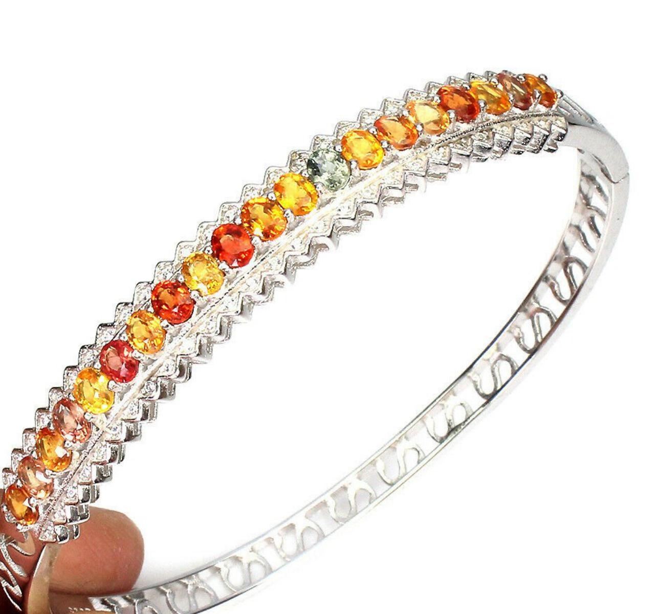 925 STERLING SILVER;;PLATE-14K WHITE GOLD;MAIN STONE-SAPPHIRE;TOTAL WEIGHT-10.71 GRAM (TOTAL WEIGHT OF SILVER + STONE)DIMENSION-* STONE 4.0 X 3.0 MM. * CZ 1.0 MM. * DIAMETER 2.5 X 2.0 INCHES. * FACE BANGLE 58.0 X 8.0 MM.;MAIN STONE SHAPE-OVAL CUT;MAIN STONE COLOR-MULTI-COLOR;CLARITY/GRADE-IF TO VVS;ORIGIN - AFRICA;HARDNESS-9;