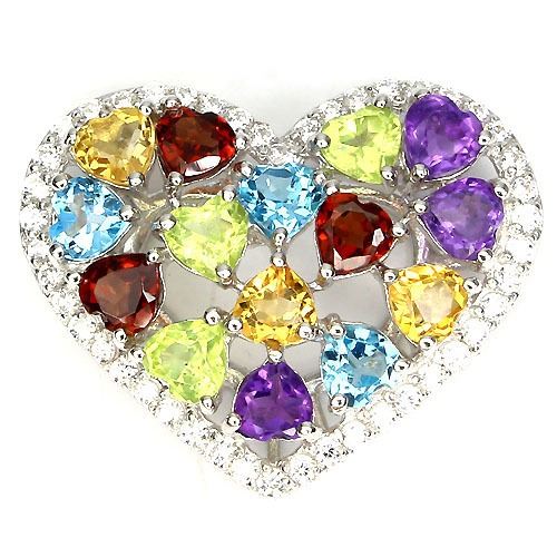 AMETHYST, MOZAMBIQUE GARNET, PERIDOT, CITRINE, TOPAZ (NATURAL) & CUBIC ZIRCONIA 14K WHITE GOLD PLATED 925 SILVER PENDANT...UNIT OF ITEM (S):1 PIECE;WEIGHT (CT.):23.62 CT. (total weight of silver + stone);DIMENSION:* STONE 4.0 MM. * CZ 1.5 MM. * FACE PENDANT 25.0 X 20.0 MM.;SHAPE/CUT:HEART FACET & ROUND DIAMOND CUT;COLOR:TOP FANCY COLORS & AAA WHITE; CLARITY/GRADE:IF TO VVS; LUSTER:GORGEOUS;TREATMENT:UNHEATED & HEATED;ORIGIN:BRAZIL, AFRICA & PAKISTAN;HARDNESS:6.5 - 8.0;