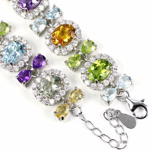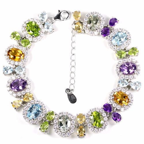 AMETHYST PERIDOT CITRINE TOPAZ & CZ 925 SILVER BRACELET 14K WHITE GOLD COATING;LENGTH OF ITEM (Inch.)8.25 ;ITEM QUANTITY-1;STONE SHAPE-OVAL & PEAR PORTUGUESE CUT;STONE DIMENSION-8 X 6 MM. , 5 X 4 MM;.ITEM WEIGHT-23.62 GRAM;COLOR-MULTI COLOR;CLARITY-IF TO VVS;TREATMENT-NATURAL UNHEATED & IRRADIATION;ORIGIN OF STONE-BRAZIL, ASIA & AFRICA;HARDNESS-6.5 - 8;WHITE CUBIC ZIRCONIA 2 MM.