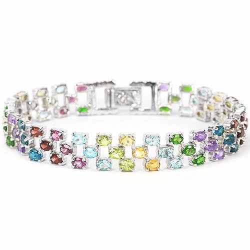 REAL AMETHYST PERIDOT CITRINE GARNET 925 SILVER BRACELET 14K WHITE GOLD COATING; LENGTH OF ITEM (Inch.)7.50;ITEM QUANTITY1;STONE SHAPE-OVAL PORTUGUESE CUT;STONE DIMENSION-4 X 3 MM.;ITEM WEIGHT-23.4 GRAM;COLORMULTI COLORCLARITY-IF TO VVS;LUSTER-FASCINATING;TREATMENTNATURAL UNHEATED IRRADIATIONORIGIN OF STONE-AFRICA, RUSSIA, ASIA BRAZIL;HARDNESS-5 - 8;