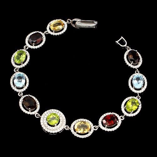 Natural Sky Blue Topaz Amethyst Citrine Cz 925 Sterling Silver Bracelet; TOTAL WEIGHT83.57 CT (TOTAL WEIGHT OF SILVER + STONE)DIMENSION* STONE 6.0 TO 8.0 X 6.0 MM. * CZ 1.0 MM. * FACE BRACELET 165.0 X 13.0 MM.;MAIN STONE SHAPE-OVAL CUT;CLARITY/GRADE-IF TO VVS;LUSTER-GORGEOUS;TREATMENT-HEATED;ORIGIN-AFRICA;HARDNESS6.5 - 8.0