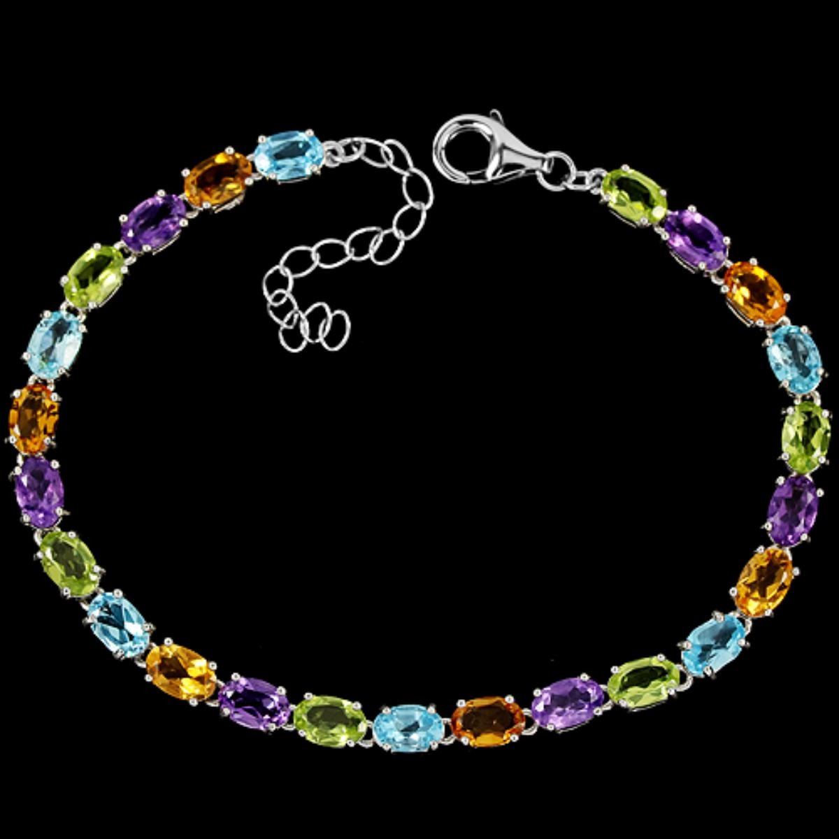 GENUINE AMETHYST PERIDOT TOPAZ CITRINE 925SILVER BRACELET 14K WHITE GOLD COATING; LENGTH OF ITEM (Inch.) 8.50 ITEM QUANTITY -1; STONE SHAPE -OVAL PORTUGUESE CUT; STONE DIMENSION -6 X 4 MM.; ITEM WEIGHT -9.8 GRAM; COLOR -MULTI COLOR; CLARITY- VVS - VS; LUSTER -ALLURING; TREATMENT -IRRADIATION UNHEATED; ORIGIN OF STONE -UNHEATED IRRADIATION; HARDNESS -6.5 - 8.0