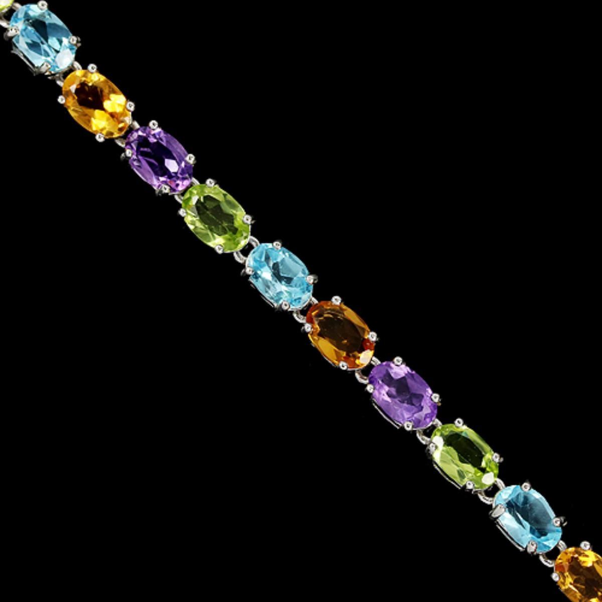 GENUINE AMETHYST PERIDOT TOPAZ CITRINE 925SILVER BRACELET 14K WHITE GOLD COATING; LENGTH OF ITEM (Inch.) 8.50 ITEM QUANTITY -1; STONE SHAPE -OVAL PORTUGUESE CUT; STONE DIMENSION -6 X 4 MM.; ITEM WEIGHT -9.8 GRAM; COLOR -MULTI COLOR; CLARITY- VVS - VS; LUSTER -ALLURING; TREATMENT -IRRADIATION UNHEATED; ORIGIN OF STONE -UNHEATED IRRADIATION; HARDNESS -6.5 - 8.0