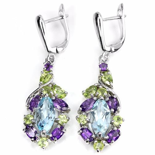 GENUINE 12X6 MM. TOPAZ AMETHYST PERIDOT 925SILVER EARRING 14K WHITE GOLD COATING; STONE SHAPE -MIXED SHAPE;STONE DIMENSION- 12 X 6 MM. , 6 X 3 MM. , 5 X 3 MM. , 3 MM. & 2.5 MM.ITEM WEIGHT- 8.1 GRAM;COLOR- MULTI COLOR;CLARITY-IF, VVS - VS;TREATMENT- IRRADIATION & UNHEATED;ORIGIN OF STONE-AFRICA, BRAZIL & ASIA;HARDNESS-6.5 - 8.0;FACE OF EARRING 44 X 13 MM.