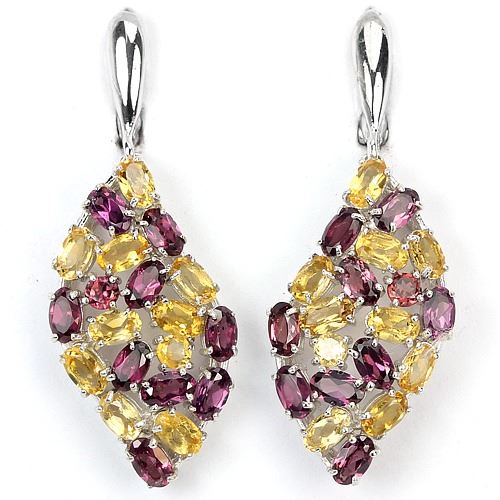 NATURAL AAA RHODOLITE GARNET & CITRINE 925 SILVER EARRING 14K WHITE GOLD COATING; STONE SHAPE-OVAL & ROUND;STONE DIMENSION5 X 3 MM. , 2.5 MM.;ITEM WEIGHT-8.6 GRAM;COLOR-PURPLISH PINK & ORANGISH YELLOW;CLARITY-VVS TO VS;TREATMENT-NATURAL UNHEATED;ORIGIN OF STONE -AFRICA & BRAZIL;HARDNESS-7 - 7.5;OTHERFACE OF EARRING 43 X 15 MM.