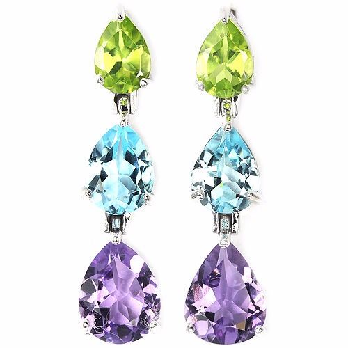REAL MULTI COLOR AMETHYST PERIDOT TOPAZ 925 SILVER EARRING 14K WHITE GOLD COATING; STONE SHAPE-PEAR PORTUGUESE CUT;STONE DIMENSION-9 X 6 MM. , 7 X 5 MM.;ITEM WEIGHT-3.4 GRAM;COLOR-MULTI COLOR;CLARITY-IF TO VVS;TREATMENT-NATURAL UNHEATED & IRRADIATION;ORIGIN OF STONE-BRAZIL, ASIA & AFRICA;HARDNESS-6.5 - 8;FACE OF EARRING -33 X 7 MM.;