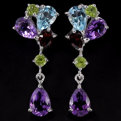 GENUINE TOPAZ AMETHYST GARNET PERIDOT 925 SILVER EARRING 14K WHITE GOLD COATING; STONE SHAPEPEAR & ROUND;STONE DIMENSION10 X 7 MM. , 9 X 6 MM. , 7 X 5 MM. , 4 MM.;ITEM WEIGHT9.3 GRAM;COLORMULTI COLOR;CLARITYIF TO VVS;LUSTERDAZZLING;TREATMENTIRRADIATION & NATURAL UNHEATED;ORIGIN OF STONEAFRICA,BRAZIL,CAMBODIA & ASIA;HARDNESS6.5 - 8;OTHERFACE OF EARRING 39 X 15 MM.