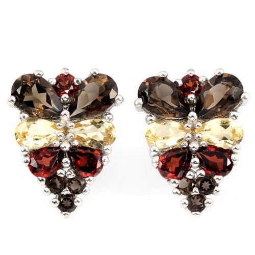 NATURAL SMOKY QUARTZ, CITRINE GARNET 925 SILVER EARRING 14K WHITE GOLD COATING; STONE SHAPEPEAR ROUND PORTUGUESE CUTSTONE DIMENSION6 X 4 MM. , 5 X 3 MM. , 4 X 3 MM. , 2.5 MM. 2 MM.ITEM WEIGHT3.2 GRAMCOLORMULTI COLORCLARITYIF, VVS - VSLUSTERWINSOMETREATMENTUNHEATEDORIGIN OF STONEBRAZIL CAMBODIAHARDNESS7.0 - 7.5OTHERFACE OF EARRING 16 X 12 MM.