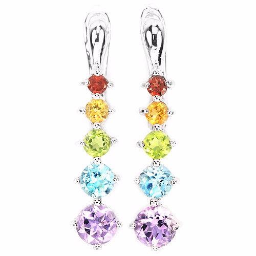 GENUINE AMETHYST TOPAZ PERIDOT CITRINE 925 SILVER EARRING 14K WHITE GOLD COATING; STONE SHAPE -ROUND; STONE DIMENSION -6 MM. , 5 MM. , 4 MM. , 3.5 MM. , 3 MM.; ITEM WEIGHT -6.3 GRAM; COLOR -MULTI COLOR; CLARITY -IF TO VVS; TREATMENT -NATURAL UNHEATED IRRADIATION; ORIGIN OF STONE -BRAZIL, AFRICA, ASIA CAMBODIA; HARDNESS -6.5 - 8; FACE OF EARRING -34 X 8 MM.
