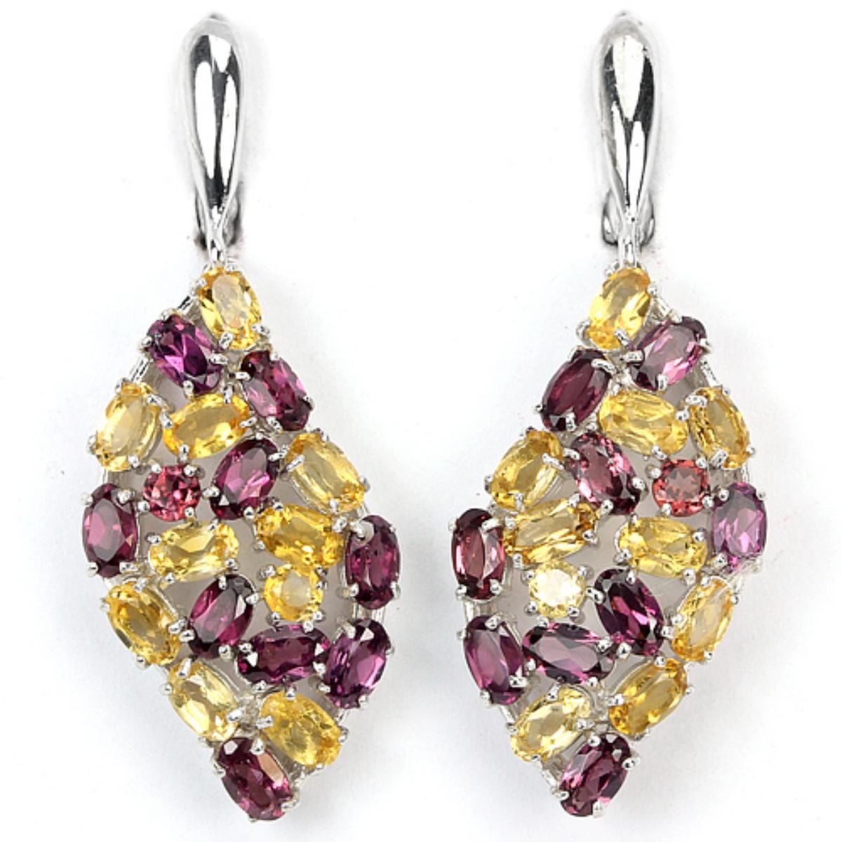 NATURAL AAA RHODOLITE GARNET CITRINE 925 SILVER EARRING 14K WHITE GOLD COATING; STONE SHAPE-OVAL ROUND;STONE DIMENSION5 X 3 MM. , 2.5 MM.;ITEM WEIGHT-8.6 GRAM;COLOR-PURPLISH PINK ORANGISH YELLOW;CLARITY-VVS TO VS;TREATMENT-NATURAL UNHEATED;ORIGIN OF STONE -AFRICA BRAZIL;HARDNESS-7 - 7.5;OTHERFACE OF EARRING 43 X 15 MM.