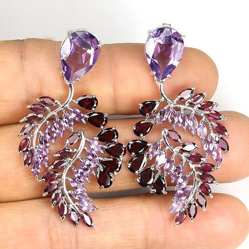 AMETHYST, GARNET & RHODOLITE GARNET 925 SILVER EARRING 14K WHITE GOLD COATING; STONE SHAPEMARQUISE & PEAR PORTUGESE CUTSTONE DIMENSION14 X 10 MM. , 6 X 4 MM. & 5 X 2.5 MM.MAIN STONE WEIGHT20.21 CARATCOLORAAA MULTI COLORCLARITYIF - VVSLUSTERDAZZLINGTREATMENTUNHEATEDORIGIN OF STONECAMBODIA, AFRICA & BRAZILHARDNESS7.0 - 7.5OTHERFACE OF EARRING 53 X 28 MM. TOTAL 14.58 G.