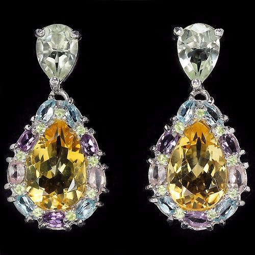 GENUINE CITRINE AMETHYST PERIDOT TOPAZ 925 SILVER EARRING 14K WHITE GOLD COATING; STONE SHAPEPEAR PORTUGESE CUTSTONE DIMENSION15 X 10 MM.MAIN STONE WEIGHT15.65 CARATCOLORORANGISH YELLOWCLARITYIF - VVSLUSTERDAZZLINGTREATMENTUNHEATEDORIGIN OF STONEBRAZILHARDNESS7.0OTHERFACE OF EARRING 35 X 17 MM. MULTI COLOR GEMSTONE 10 X 7 MM. , 5 X 2.5 MM. & 1.7 MM. TOTAL 12.70 G.