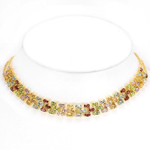 Natural AMETHYST GARNET PERIDOT CITRINE TOPAZ925 SILVER NECKLACE 14K YELLOW GOLD COATING; LENGTH OF ITEM (Inch.) 16.00 ( RESIZE : NO ) ITEM QUANTITY 1 STONE SHAPE OVAL PORTUGUESE CUT STONE DIMENSION 5 X 3 MM. ITEM WEIGHT 23.6 GRAM COLOR MULTI COLOR CLARITY IF TO VVS LUSTER FASCINATING TREATMENT NATURAL UNHEATED IRRADIATION ORIGIN OF STONE AFRICA, CAMBODIA,ASIA BRAZIL HARDNESS 6.5 - 8
